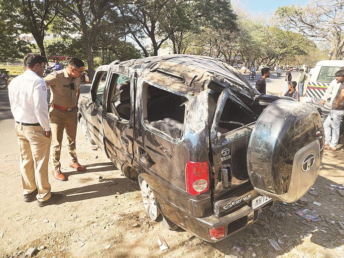 गतिरोधकाचा अंदाज चुकला; कार हवेत उडून उलटली; व्यावसायिक ठार, दोघे जखमी