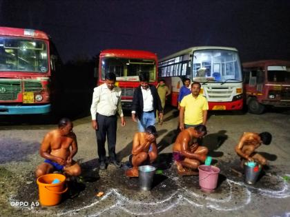 एकीकडे चालक- वाहकांना अभ्यंगस्नान; दुसरीकडे आगारासमोर पुन्हा आंदोलन