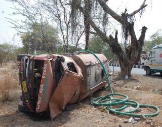 साऊथसिटी जवळ पाण्याचा टँकर उलटला