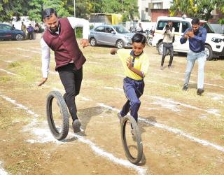 मस्ती की पाठशाला! IAS प्रशासकांना आठवले बालपण, शाळेत टायर गाडा खेळात सहभाग