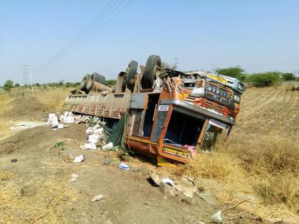 धुळे - सोलापूर राष्ट्रीय महामार्गावर आडूळनजीक बिअरचा ट्रक पलटून झालेल्या अपघातात चालक गंभीर जखमी झाला आहे.