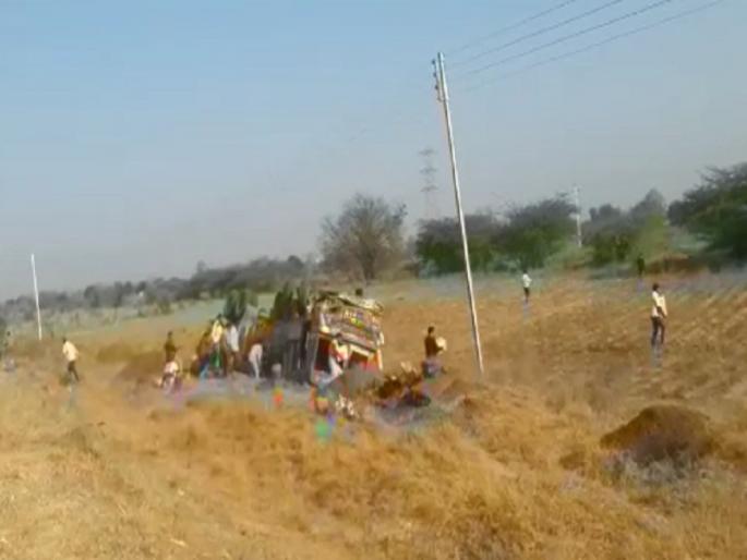 पहा व्हिडिओ : धुळे- सोलापूर महामार्गावरील बिअरचा ट्रक उलटला, लोकांनी बिअरचे बॉक्स पळविले