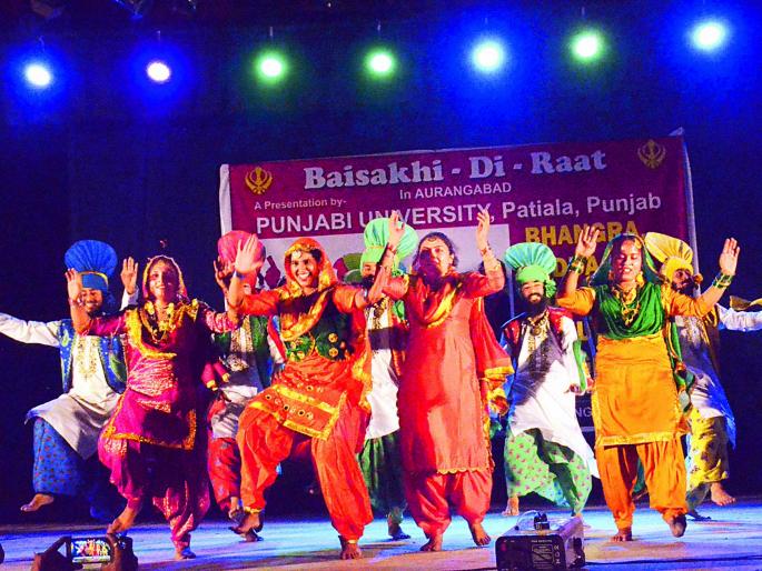 लोकमत न्यूज नेटवर्कऔरंगाबाद : पारंपरिक वेशभूषा साकारून पारंपरिक वाद्यांच्या तालावर भांगडा, गिद्दा, जिंदवा या पंजाबी लोकनृत्यांसह सादर झालेल्या लोकगीतांच्या माध्यमातून सोमवारी (दि.१६) पंजाबी संस्कृतीचे दर्शन घडले. निमित्त होते औरंगाबाद शीख संघातर्फे (संगत) आयोजित केलेल्या ‘बैसाखी-दी-रात’ या कार्यक्रमाचे.बैसाखी सणानिमित्त शहरातील संत तुकाराम नाट्यगृहात सोमवारी रात्री हा रंगारंग आणि पंजाबी संस्कृतीचे दर्शन घडविणारा कार्यक्रम झाला. याप्रसंगी सरदार जयमलसिंग रंधावा, अमरजितसिंग सैनी, गुरुद्वारा ‘श्री गुरु तेगबहादूर लंगर साहेब’चे अध्यक्ष रणजितसिंग गुलाटी, अवतारसिंग सोढी, हरविंदरसिंग सलुजा, हरदेवसिंग मुच्छल, गुरुद्वारा श्री गुरुसिंग सभाचे अध्यक्ष हरविंदरसिंग बिंद्रा, भाईदयासिंग गुरुद्वाराचे अध्यक्ष नरेंद्रसिंग जबिंदा, मनमोहनसिंग ओबेरॉय आदींची उपस्थिती होती.पंजाबी युनिव्हर्सिटी पटियाला (पंजाब)च्या युवा कल्याण विभागातील विजय यमला, गगनजितसिंग यांच्यासह २६ कलावंतांंच्या पथकातर्फे ‘बैसाखी-दी-रात’ हा सांस्कृतिक कार्यक्रम सादर क रण्यात आला. कार्यक्रमाची सुरुवात ‘आज दिन बैसाखी दा लोको’ या गीताने झाली. यानंतर ‘सद्गुरूनानक तेरी लीला न्यारी है’ हे गीत सादर झाले. ढोल, तुंबी (एकतारा), मडके अशा पारंपरिक वाद्यांच्या तालावर सादर होणाऱ्या लोकगीतांनी उपस्थित मंत्रमुग्ध होऊन गेले. गीतांच्या सादरीकरणानंतर प्रारंभी जिंदवा हे लोकनृत्य सादर करण्यात आले. यावेळी युवक-युवतींनी सादर केलेल्या कलाविष्काराने कार्यक्रमात रंगत आली. कलावंतांनी भांगडा नृत्य सादर करून कार्यक्रमात अनोखी ऊर्जा भरली. यावेळी कलावंतांना प्रोत्साहन देण्यासाठी टाळ्यांचा कडकडाट होत होता. प्रारंभी सरदार जयमलसिंग रंधावा यांनी मनोगत व्यक्त केले. समाजबांधवांनी एकत्रित येण्यासाठी हा कार्यक्रम महत्त्वपूर्ण ठरला. येणाºया पिढीसाठी असे कार्यक्रम यापुढेही आयोजित करण्यात येईल, असे ते म्हणाले.