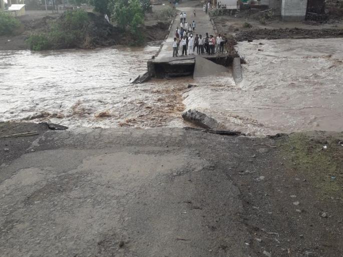 उपळी : शनिवारी सायंकाळी पिशोर परिसरात झालेल्या मुसळधार पावसामुळे उपळी येथील अंजना नदीवरील पूल पुराच्या पाण्याने खचला. यामुळे उपळी, भराडी, लोणवाडी, पळशी, मांडगाव या गावांचा संपर्क तुटला आहे.वाहतुकीची अडचण येत असल्याने नागरिकांना २० कि.मी.चा फेरा मारुन जावे लागत आहे. परिसरातील लहान मुलांना भराडी येथे शाळेत जावे लागते. या पुलामुळे विद्यार्थ्यांनाही हा फेरा मारुन जावे लागेल, असे नागरिकांनी सांगितले. शनिवारी मध्यरात्री पुराने उपळी गावाला वेढा घातला होता. नदीकाठावर राहणाऱ्या नागरिकांना ग्रामस्थांनी घरातील सामान सुरक्षित स्थळी हलवून मदत केली. पुलाची तात्पुरती दुरुस्ती करून नागरिकांचा २० कि.मी.चा हेलपाटा वाचवावा, अशी मागणी उपळीच्या सरपंच मीराबाई सुरडकर, उपसरपंच भगवान नाईक, साहेबराव शेजूळ, उमेश शेजूळ, हिराजी शेजूळ, पवन शेजूळ, राजेंद्र सुरडकर व नागरिकांनी केली आहे.