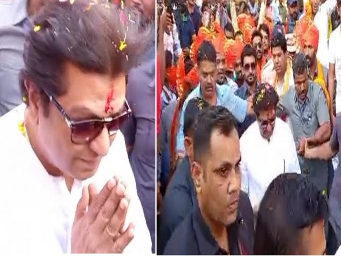 औरंगाबाद : मनसे अध्यक्ष राज ठाकरे यांचे औरंगाबाद येथे ५. १५ वाजेच्या दरम्यान आगमन झाले. ढोल ताश्यांच्या पथकाने त्यांचे जोरदार स्वागत करण्यात आले. क्रांती चौकातील छत्रपती शिवाजी महाराजांच्या पुतळ्यांना अभिवादन केल्यानंतर राज ठाकरेंचा ताफा पुढे रवाना झाला.