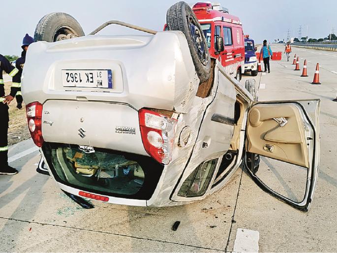 शिर्डी येथून एक आलिशान चारचाकी (एमएच ३१ ईके १३६२) नागपूरच्या दिशेने जात होती. या गाडीमध्ये दोन महिला, दोन पुरुष आणि दोन लहान मुले होती. हे सर्व जण समृद्धी महामार्गावरून नागपूरकडे जात होते. त्यांच्यासोबत आणखी एक गाडी होती. ती गाडी वेगात पुढे निघून गेल्यानंतर पाठीमागे पडलेल्या गाडीच्या चालकाने समृद्धीवरून थरारक पद्धतीने वाहन दामटण्यास सुरुवात केली. लासूर स्टेशनच्या पुढे निघाल्यानंतर पोटूळजवळ आल्यानंतर अतिवेगात असल्यामुळे गाडीचे चाक फुटले. त्यामुळे गाडीने नागपूरच्या दिशेने जाणाऱ्या रस्त्यावरून क्रॉसिंग करीत शिर्डीकडे जाणाऱ्या रस्त्यावर चार वेळा कलंडली.