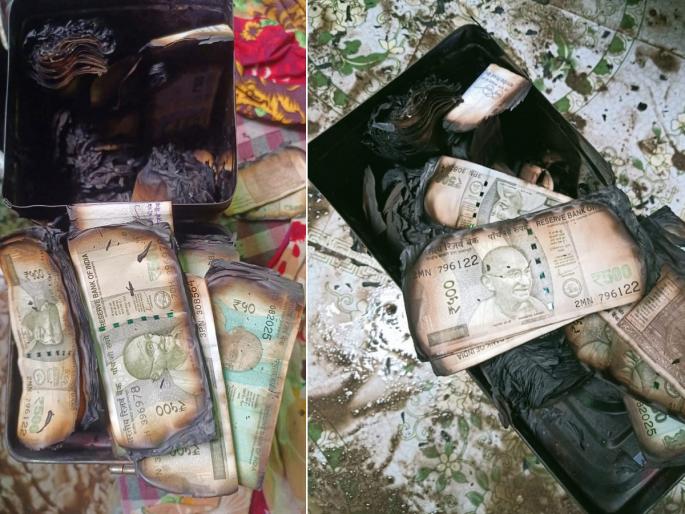 सिल्लोड: तालुक्यातील जळकी येथील किराणा दुकानदाराच्या घराला आज सकाळी ८ वाजेच्या सुमारास अचानक आग लागली. यात घरातील कपाटात एका डब्यात ठेवलेली चार लाख रुपयांच्या नोटा जळून खाक झाल्या. सुदैवाने यात जीवितहानी झाली नाही. मात्र, किराणा माल, दागिने, रोकड आणि जीवनावश्यक वस्तू जळून एकूण १० लाखांचे नुकसान झाले आहे.