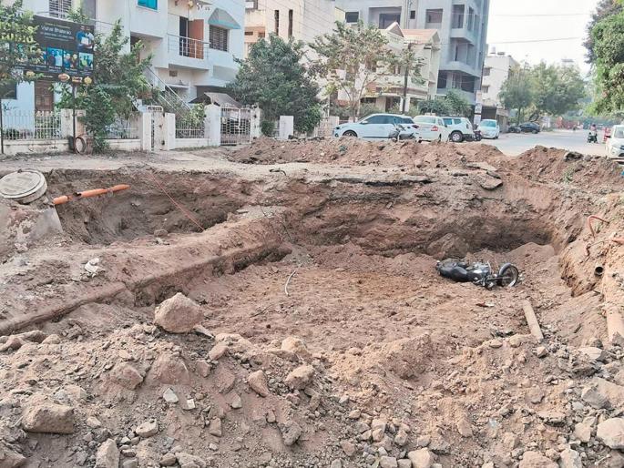 महापालिका आणि स्मार्ट सिटीच्या निधीतून ३१७ कोटींची कामे सुरू आहेत. आतापर्यंत ७० रस्त्यांची कामे पूर्ण झाली. १०१ रस्त्यांवरील ९ पुलांच्या कामांना सुरुवात करण्यात आली आहे. ओंकारेश्वर चौक येथे ए. जी. कन्स्ट्रक्शन्स कंपनीने जेसीबीच्या साहाय्याने खोदकाम केले. खोदकाम केल्यानंतर चारही बाजूने बॅरिकेड्स, रिफ्लेक्टर रिबीनसुद्धा लावण्यात आले नाहीत. रस्त्याच्या दोन्ही बाजूला वाहनधारकांना सूचना देणारे फलकही लावले नाहीत. निव्वळ मातीचा ढिगारा करून ठेवला. या भागातील एक नागरिक रविवारी रात्री बुलेटवरून जात असताना त्यांना खड्डा दिसला नाही. बुलेटसह ते खड्ड्यात पडले. चालकाला जबर दुखापत झाली. या घटनेबद्दल चालकाने थेट स्मार्ट सिटीकडे तक्रार केली.