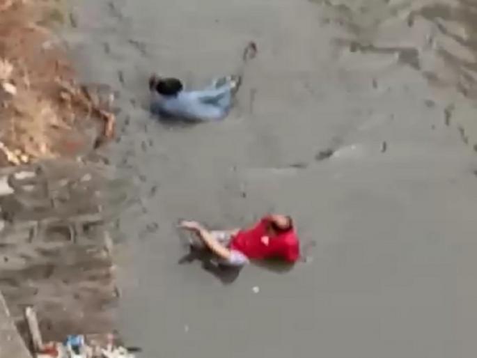 नाल्यात बसल्याचा व्हिडिओ व्हायरलदोन जुगारी पोलिसांच्या धाकापोटी नाल्याच्या पाण्यात बसल्याचे पाहून नाल्याजवळील इमारतीमधील कुणीतरी रहिवाशाने त्यांची मोबाईलवर क्लीप तयार केली. ही क्लीप मंगळवारी समाज माध्यमांवर व्हायरल केली.