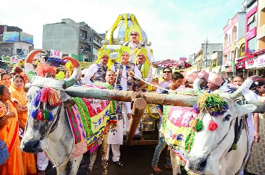 पैठणगेट येथून मुख्य शोभायात्रेला सकाळी ९.३० वाजता सुरुवात झाली. यावेळी आचार्य कुशाग्रनंदीजी म. सा.,नवीनसागरजी म. सा., मुनीश्री आगमसागरजी म. सा., पुनीतसागरजी म. सा., सहजसागरजी म. सा. आदी साधू-संतांनी सहभागी होऊन सर्वांचा उत्साह वाढविला. आचार्यजींनी सर्वांना महावीर जयंतीच्या शुभेच्छा देऊन आशीर्वाद दिला. यानंतर ढोल-ताशांच्या निनादात शोभायात्रेला सुरुवात झाली. ‘देशाच्या विकासात जैन समाजाचे योगदान’ तसेच धार्मिक व सामाजिक विषयांवरील ४० देखाव्यांनी लक्ष वेधून घेतले होते. टिळकपथ, गुलमंडी, मछली खडक, सिटीचौक, सराफा रोड, शहागंजमार्गे शोभायात्रा राजाबाजारात पोहोचली. औरंगपुºयातील स. भु. मैदानावर महाप्रसादी, रक्तदान शिबीर, वृक्षांचे वाटप आदी कार्यक्रम पार पडले.