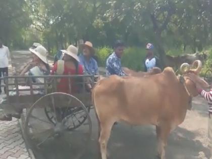 आंदोलनामुळे बस बंद, अजिंठ्यात पर्यटकांनी केली बैलगाडीतून सफर