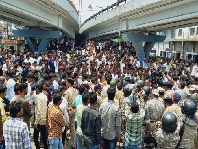 शहरातील क्रांती चौक येथे सर्वपक्षीय मराठा समाजाचे कार्यकर्ते आणि पदाधिकारी मोठ्या संख्येने उपस्थित आहेत. हे कार्यकर्ते एक मराठा लाख मराठा ,राज्य सरकारचा करायचं काय खाली मुंडकं वर पाय ,मराठ्यांना आरक्षण मिळाले पाहिजे, आरक्षण आमच्या हक्काचं नाही कुणाच्या बापाचं, जालना जिल्ह्याचे पोलीस अधीक्षक तुषार जोशी यांना बडतर्फ करा अशा घोषणा पदाधिकारी देत आहेत. यातील काही कार्यकर्ते रस्त्यावर बसून ठिय्या आंदोलन देत आहेत. कायदा सुव्यवस्थेचा प्रश्न निर्माण होऊ नये यासाठी पोलीस उपायुक्त शीलवंत नांदेडकर सहाय्यक आयुक्त गणपत शिंदे आणि अन्य पोलीस अधिकारी मोठ्या संख्येने पोलिसासह उपस्थित आहेत.