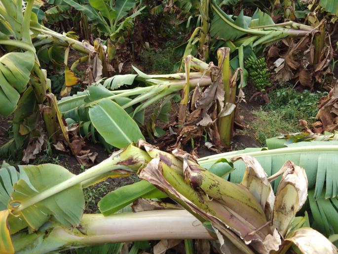 तालुक्यातील जामगाव मार्गावरील गंगापूर शिवारात मारुती धनायत यांच्या शेतातील केळीची बाग वादळी वाºयामुळे उद्ध्वस्त झाली. यामुळे धनायत यांचे लाखो रुपयांचे नुकसान झाले आहे. कृषी विभागाने पंचनामे करून नुकसानभरपाई देण्यात यावी, अशी मागणी सदर शेतकºयाने केली आहे.
