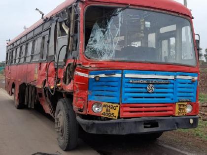 An accident between two ST buses due to tire burst in Aurangabad :बसचे समोरील टायर फुटल्याने चालकाचे नियंत्रण सुटले
