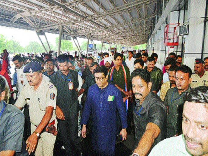मुंबईहून सायंकाळी ५.३० वाजता चिकलठाणा विमानतळावर राज ठाकरे यांचे आगमन झाले. त्यावेळी मनसेचे जिल्हाध्यक्ष सुमित खांबेकर, शहराध्यक्ष सतनामसिंग गुलाटी, जिल्हा संघटक संदीप कुलकर्णी, मनविसे जिल्हाध्यक्ष अमोल खडसे यांच्यासह पदाधिकाऱ्यांनी त्यांचे स्वागत केले. मोठ्या संख्येने कार्यकर्त्यांची उपस्थिती होती. विमानतळापासून जालना रोडवरील हॉटेलपर्यंत वाहन रॅली काढण्यात आली. राज ठाकरे यांनी सायंकाळी पदाधिकाºयांची बैठक घेऊन संवाद साधला.