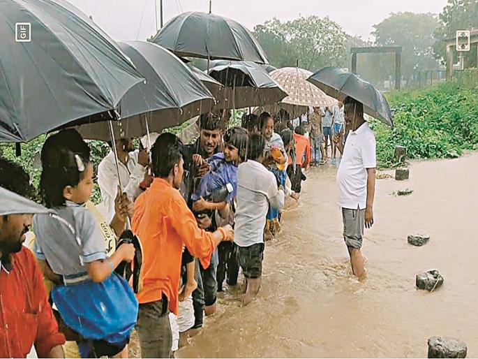 सोयगाव-बनोटी मंडळात झालेल्या पावसामुळे या भागातील नदी-नाल्यांना आलेल्या पुराचे पाणी पाचोरा तालुक्यातून वाहत आहे. या तालुक्यातील वडगाव (कडे) येथे असलेल्या नळकांडी पुलावरून वाहत असल्याने शेजारीच असलेल्या प्राथमिक शाळेला या पाण्याने वेढा घातला. यावेळी शाळा सुरू असल्याने शाळेत तब्बल ५८ विद्यार्थी व शिक्षक हजर होते. मात्र, सदर घटना ग्रामस्थांच्या लक्षात आल्याने त्यांनी तातडीने पुरात मानवी सापळा रचून या विद्यार्थ्यांना सुखरूप बाहेर काढले. या घटनेमुळे गावात एकच गोंधळ उडाला होता. शिवाय एवढी मोठी घटना घडल्यानंतरही सोयगाव किंवा पाचोरा प्रशासनाकडून एकही प्रतिनिधी घटनास्थळी न आल्याने ग्रामस्थांनी संताप व्यक्त केला आहे.