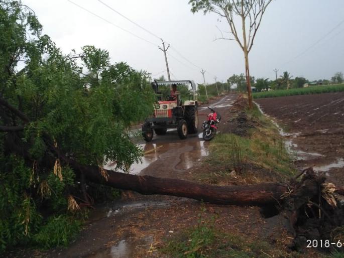 नेवरगाव येथील बाबूराव शंकर नरवडे, मुकेश मच्ंिछद्र गायकवाड, सविता गायकवाड यांच्या घरांवरील पत्रे उडाली, तर या गावच्या परिसरात अनेक ठिकाणी झाडे कोसळून वीज तारा तुटल्याने येथील वीज पुरवठा खंडित झाला होता. वृक्ष तसेच विद्युत खांब कोसळल्याने जामगाव ते नेवरगाव रस्त्यावरील वाहतूक बराच वेळ ठप्प झाली होती.