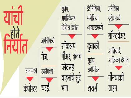औद्योगिक वसाहतींमधील कंपन्यांत तयार झालेले उत्पादन दररोज किमान १ हजार ५०० ट्रकमधून देशभरातील विविध शहरांत पाठविले जाते. दिवसाला २५ ते ३० हजार टन माल शहरातून पाठविला जातो. आजघडीला मुंबई, दिल्लीसह विविध शहरांतून देश- विदेशांमध्ये मालाची निर्यात केली जाते. एक-दोन नव्हे तर जगभरातील तब्बल ८० देशांमध्ये औद्योगिक उत्पादनांची निर्यात होते. आशियाई, आफ्रिकन देशांबरोबर, अमेरिका, युरोपमध्येही निर्यात होते. यामध्ये वाहन आणि वाहनांचे सुटे भाग, औषधी, सॉफ्टवेअरसह अनेक उत्पादनांचा समावेश आहे. यातून वर्षाकाठी १७ हजार कोटी रुपयांची उलाढाल होत आहे.