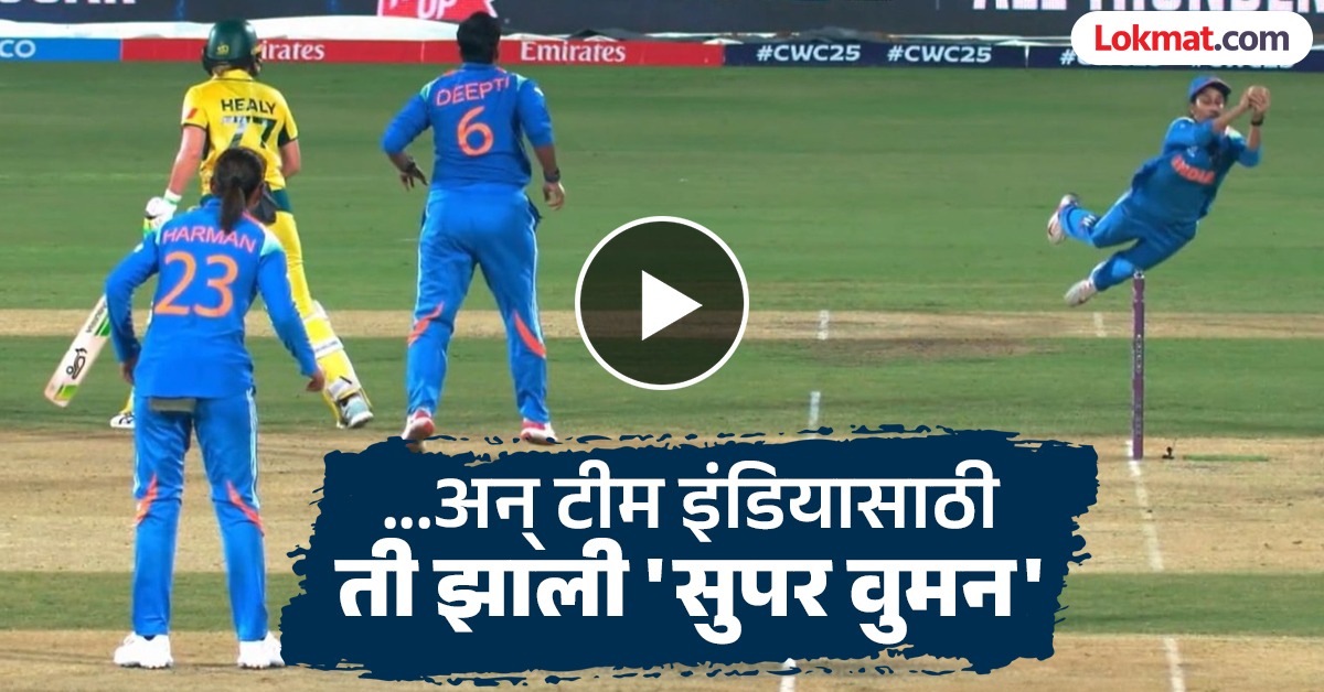 एलिसा पेरीची जागा घेण्यासाठी आलेल्या आणि मागील सामन्यात शतक झळकवणारी बेथ मूनी टीम इंडियासाठी डोकेदुखी ठरू शकली असती. पण जेमीच्या जबरदस्त क्षेत्ररक्षणामुळे टीम इंडियानं तिला स्वस्तात माघारी धाडण्याचा डाव यशस्वी ठरला. ही विकेट दीप्तीच्या खात्यात जमा झाली असली तरी याच सगळं श्रेय हे जेमिमा रॉड्रिग्सलाच द्यावे लागेल. तिने हवेत झेपावत वर्ल्ड कप स्पर्धेतील सर्वोत्तम झेल टिपत बेथ मूनीला अवघ्या ४ धावांवर पॅव्हेलियनचा रस्ता दाखवला. जेमीचा फ्लाइंग कॅच हा टीम इंडियाच्या हातून निसटत चालेला सामना पुन्हा भारतीय संघाच्या बाजूनं झुकवणारा असाच होता.