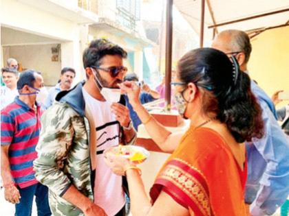 पालघर - शार्दुल ठाकूर गुरुवारी आपल्या घरी माहीम (केळवा) येथे पोहोचला. मित्रांनी फटाके वाजवून त्याचे जोरदार स्वागत केल्यानंतर आईने औक्षण करून शार्दुलला पेढा भरवला. पालघरचे नाव उंचावलेल्या शार्दुलचे जंगी स्वागत करण्याच्या स्थानिकांच्या मनसुब्यावर कोरोना प्रादुर्भावाने पाणी फेरले. शार्दुलचे सातत्य कायम टिकण्यासाठी सर्वांनी शुभेच्छा द्याव्यात, असे वडील नरेंद्र व आई हंसा यांनी सांगितले.  घरी पोहोचताच शार्दुल क्वारंटाईन झाला.