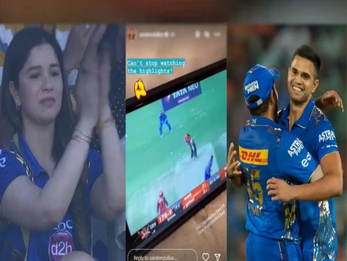 sara tendulkar and arjun tendulkar । हैदराबाद : सध्या आयपीएलच्या सोळाव्या हंगामाचा थरार रंगला आहे. काल झालेल्या सामन्यात मुंबई इंडियन्सने (MI vs SRH) यजमान सनरायझर्स हैदराबादचा पराभव करून विजयाची हॅटट्रिक लगावली. भारताचा महान फलंदाज सचिन तेंडुलकरसाठी कालचा दिवस खूप खास होता. कारण मास्टर ब्लास्टर सचिनचा मुलगा अर्जुन तेंडुलकरने काल आयपीएलमध्ये पहिली विकेट घेतली. ३ वर्षे मुंबईच्या संघासोबत राहिल्यानंतर अखेर रविवारी अर्जुनने केकेआरविरूद्धच्या सामन्यातून आयपीएलमध्ये पदार्पण केले. आयपीएलमधील दुसऱ्या सामन्यात चमकदार कामगिरी करून ज्युनिअर तेंडुलकरने सर्वांचे लक्ष वेधले.