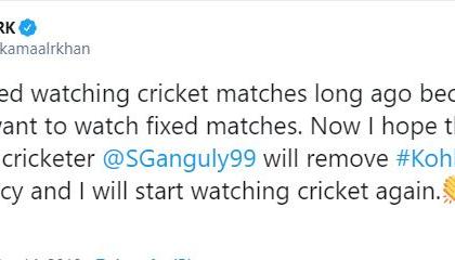 बॉलीवूडमधील कलाकार रशिद खानने गांगुलीकडे कोहलीला कर्णधारपदावरून काढण्याची मागणी केली आहे. रशिदने ट्विटरवर लिहिले होते की, " मी बऱ्याच काळापासून क्रिकेट पाहत नाही. कारण सध्या क्रिकेटमध्ये फिक्सिंग सुरु आहे. सौरव गांगुलींनी बीसीसीआयचे अध्यक्षपद स्वीकारल्यावर विराट कोहलीचे कर्णधारपद काढायला हवे. विराटला कर्णधारपदावरून काढल्यानंतर मी पुन्हा क्रिकेट पाहायला सुरुवात करेन."
