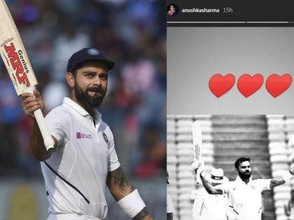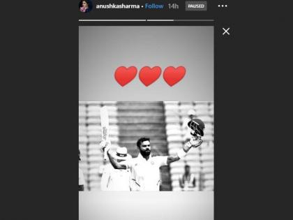 कोहलीच्या द्विशतकानंतर अनुष्काने आपल्या इंस्टाग्रामवर एक पोस्ट केली आहे. या पोस्टमध्ये एक फोटो आहे. द्विशतक झळकावल्यानंतर कोहलीने जे सेलिब्रेशन केले तो फोटो अनुष्काने शेअर केला आणि त्यावर लाल रंगाचे हार्ट्सचे इमोजी पोस्ट केले आहेत.