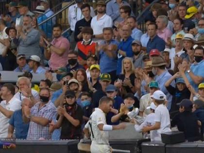 १ बाद ४ अशा अवस्थेत वॉर्नर व लाबुशेन ही जोडी इंग्लंडच्या गोलंदाजांसमोर उभी राहिली. या दोघांनी दुसऱ्या विकेटसाठी १७२ धावांची भागीदारी केली. वॉर्नरनं १६७ चेंडूंत ११ चौकारांसह ९५ धावांची खेळी केली. बेन स्टोक्सनं त्याची विकेट काढली. सलग दुसऱ्या कसोटीत शतकाच्या उंबरठ्यावरून माघारी जावं लागल्यानं वॉर्नर रडवेला झाला. पण, त्यानं त्याच्या भावनांना आवर घातली. पेव्हेलियनमध्ये परत जात असताना त्यानं त्याची ग्लोव्हज लहान मुलाला भेट दिले आणि त्याची ही कृती सर्वांची मनं जिंकणारी ठरली.