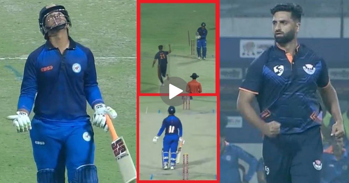 कोलकाताच्या ईडन गार्डन्सवर बिहार विरुद्ध जम्मू–कश्मीर यांच्यात साखळी फेरीतील सामना खेळवण्यात आला. बिहारच्या डावाची सुरुवात करताना वैभव सूर्यवंशी ७ चेंडूचा सामना करून अवघ्या ७ धावांवर तंबूत परतला. जम्मू–कश्मीरचा वेगवान गोलंदाज आकिब नबीने त्याला कमालीच्या चेंडूवर बोल्ड केले. आकिबचा वेगवगान चेंडूवर लेग स्टंप अक्षरशः दोन तीन फूटावर जाऊन पडल्याचे पाहायला मिळाले. हा व्हिडिओ सोशल मीडियावर चर्चेचा विषय ठरत आहे.