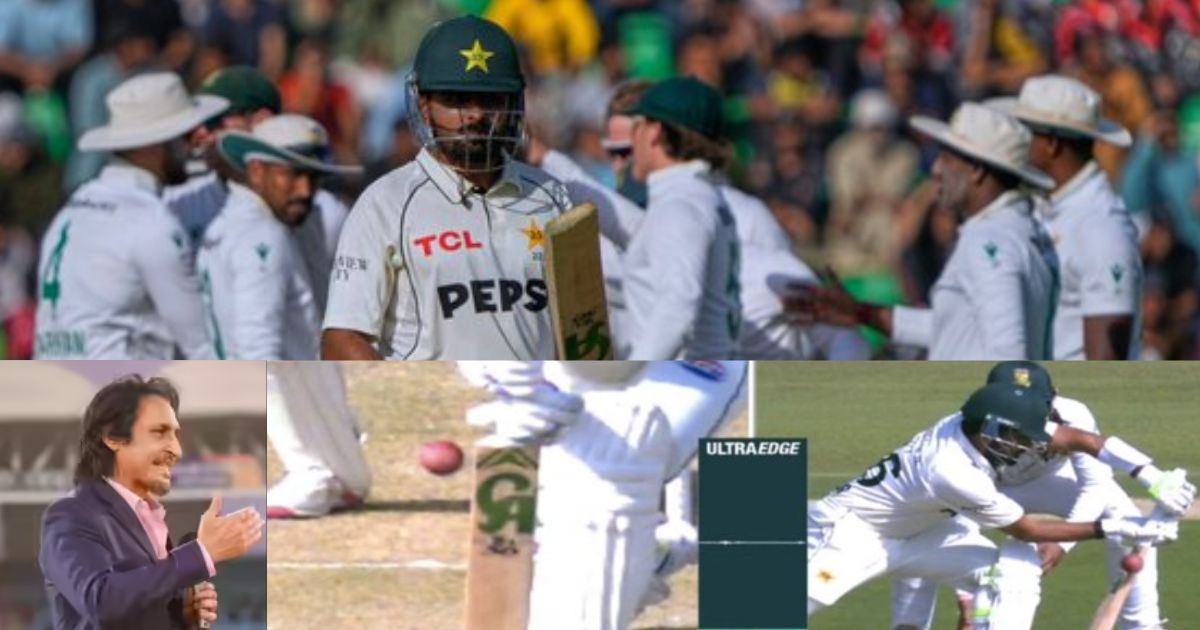 पाकिस्तानच्या डावातील ४९ व्या षटकात दक्षिण आफ्रिकेचा सायमन हार्मर याच्या गोलंदाजीवर बाबर आजम यष्टीसमोर सापडला. गोलंदाज आणि आफ्रिकेच्या ताफ्यातील खेळाडूंनी अपील केल्यावर पंचांनी बाबरला आउट दिलं. मग बाबर आझमनं पंचाच्या निर्णायाला आव्हान करत रिव्ह्यू घेतला. ते पाहून कॉमेंट्री करणाऱ्या रमीझ राजाने आउट आहे, पण तो नौटंकी करतोय, अशी कमेंट केली. त्यांची ही कमेंट चर्चेचा विषय ठरत आहे.