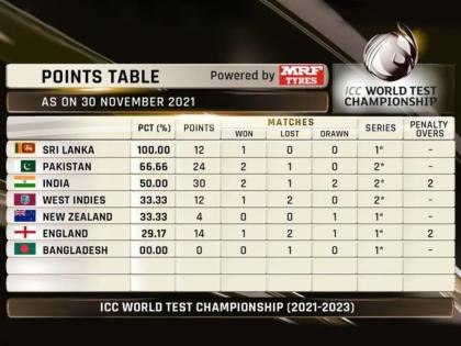 या विजयानंतर पाकिस्ताननं जागतिक कसोटी अजिंक्यपद स्पर्धेच्या गुणतक्त्यात दुसऱ्या क्रमांकावर झेप घेतली. टीम इंडियाची तिसऱ्या स्थानी घसरण झाली. पाकिस्तानच्या खात्यात २४, तर टीम इंडियाकडे ३० गुण आहेत, परंतु विजयाची सरासरी काढल्यास पाकिस्तान ६६.६६%सह वरचढ ठरतोय.