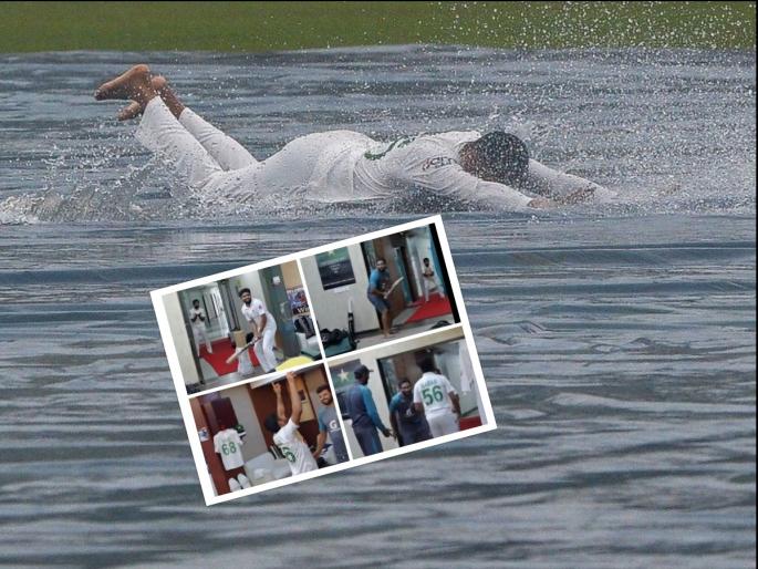बांगलादेश व पाकिस्तान यांच्यात सुरू असलेल्या दुसऱ्या कसोटीचा दुसरा दिवस पावसामुळे वाया गेला. पाकिस्ताननं पहिल्या दिवशी २ बाद १८८ धावा केल्या होत्या. पावसामुळे पहिल्या दिवशी ६३ षटकांचाच खेळ झाला. त्यानंतर आज दुसऱ्या दिवशी पावसाची बॅटींग सुरूच राहिल्यानं खेळ होऊ शकला नाही. अशात पाकिस्तानी खेळाडू ड्रेसिंग रुममध्ये क्रिकेट खेळताना दिसले, तर बांगलादेशचा अष्टपैलू खेळाडू शाकिब अल हसननं थेट मैदानावर धाव घेत लहान मुलांसारखी पाण्यात उडी मारली. त्याचा हा व्हिडीओ सोशल मीडियावर चांगलाच व्हायरल झाला आहे.