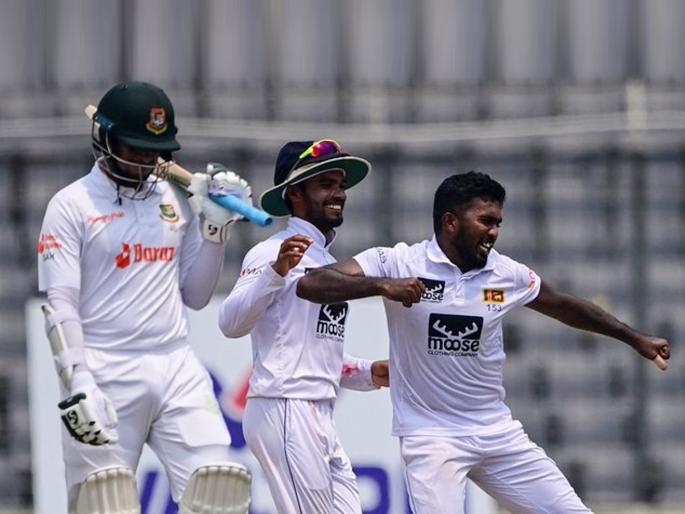 Asitha Fernando, BAN vs SL WTC23: मिरपूर येथे बांगलादेश विरूद्धच्या दुसऱ्या कसोटीत पाहुण्या श्रीलंकेने यजमानांना पराभूत केले आणि १-० ने मालिका जिंकली. बांगलादेशने पहिल्या डावात साडेतीनशे (३६५) पार मजल मारल्यानंतर श्रीलंकेने प्रत्यु्त्तरात धावसंख्या पाचशेपार (५०६) पोहोचवली. त्यानंतर दुसऱ्या डावात असिथा फर्नांडोच्या भेदक माऱ्यापुढे बांगलादेशी फलंदाजांनी गुडघे टेकवले आणि त्यांचा डाव १६९ धावांत आटोपला. त्यानंतर विजयासाठी आवश्यक २९ धावा करत श्रीलंकेने सामन्यासह मालिका खिशात घातली. असिथा फर्नांडोने सामन्यात १० बळी घेत सामनावीराचा मान पटकावला. तसेच, केवळ दुसऱ्यांदा परदेशातील कसोटीत श्रीलंकेच्या गोलंदाजाने सामन्यात १० विकेट्स घेण्याचा पराक्रम केला.