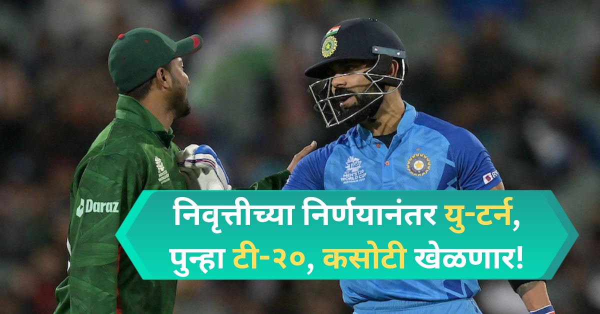 भारताचा स्टार फलंदाज विराट कोहली याने आंतरराष्ट्रीय टी-२० आणि कसोटी क्रिकेटमधून निवृत्ती जाहीर केल्यानंतर क्रिकेट जगतात मोठी चर्चा सुरू झाली आहे. दक्षिण आफ्रिकेविरुद्धच्या लाजिरवाण्या पराभवानंतर कोहली पुन्हा कसोटी क्रिकेट खेळेल अशी अटकळ होती. परंतु, विराटने हे स्पष्ट केले की, तो फक्त एकदिवसीय क्रिकेटवर लक्ष केंद्रित करणार आहे. याच पार्श्वभूमीवर, बांगलादेशचा स्टार ऑलराऊंडर शाकिब अल हसन याने महत्त्वपूर्ण विधान केले. त्याने काही महिन्यांपूर्वीच कसोटी आणि टी-२० क्रिकेटमधून निवृत्तीची घोषणा केली असली तरी, आता तो पुन्हा तिन्ही फॉरमॅटमध्ये खेळण्याची इच्छा व्यक्त करत आहे.