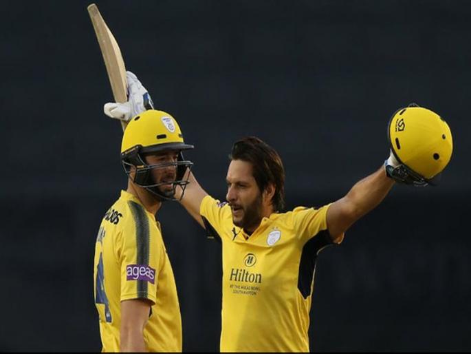 डर्बिशायर आणि हॅम्पशायर यांच्यात झालेल्या नॅटवेस्ट टी-20 ब्लास्ट क्रिकेट स्पर्धेच्या उपांत्यपूर्व फेरीत आफ्रिदीने धुवांधार फलंदाजी केली. मंगळवारी झालेल्या या सामन्यात डर्बिशायर संघाचा कर्णधार गॅरी विल्सन याने नाणेफेक जिंकून प्रथम क्षेत्ररक्षण स्वीकारले. प्रतिस्पर्धी हॅम्पशायरकडून 37 वर्षीय शाहिद आफ्रिदीने डावाची सुरुवात केली. त्याने फलंदाजीस आल्यापासून चौफेर फटकेबाजी करत मैदानात चौकार षटकारांची बरसात केली. आफ्रिदीच्या या झंझावातासमोर प्रतिस्पर्धी गोलंदाज हतबल झाल्याचे चित्र दिसत होते. सुसाट सुटलेल्या आफ्रिदीने अवघ्या 20 चेंडूत अर्धशतक पूर्ण केले. तर शतकी मजल गाठायला त्याला 42 चेंडू लागले.