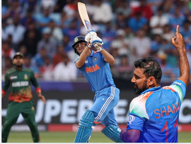 मोहम्मद शमीच्या भेदक माऱ्यानंतर सलामीवीर शुबमन गिलनं केलेल्या धमाकेदार इनिंगच्या जोरावर भारतीय संघानं बांगलादेश विरुद्धचा सामना जिंकत चॅम्पियन्स ट्रॉफी स्पर्धेत विजयी सलामी दिलीये. दुबईच्या आंतरराष्ट्रीय क्रिकेट स्टेडियमवर रंगलेल्या सामन्यात बांगलादेशच्या संघानं पहिल्यांदा बॅटिंग करताना २२८ धावा करत टीम इंडियासमोर २२९ धावांचे टार्गेट सेट केले होते. या धावांचा पाठलाग करताना भारतीय संघ सहज विजय नोंदवेल, असे वाटत होते. पण रोहित शर्मा ४१ (३६) धावा करून तंबूत परतल्यावर मध्यफळीतील फलंदाज स्वस्तात आटोपले. विराट कोहली २२ (३८) आणि श्रेयस अय्यर १५ (१७) पाठोपाठ अक्षर पटेलची ८ (१२) विकेट पडल्यावर सामन्यात ट्विस्ट येतोय असं चित्र निर्माण झाले होते. पण शुबमन गिल आणि लोकेस राहुल जोडी जमली. अन् शेवटी भारतीय संघानं सामना जिंकला.