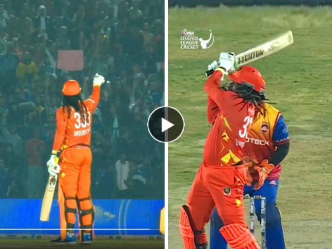 Chris Gayle Power Hitting, LLC 2024: लेजंड्स लीग क्रिकेट स्पर्धेमध्ये काल गुजरात जायंट्स आणि कोणार्क सूर्याज यांमध्ये सामना रंगला. या सामन्यात कोणार्क सूर्याज संघाने ७ गडी आणि ५ षटके राखून विजय मिळवला. गुजरात जायंट्स संघाने सर्वप्रथम फलंदाजी करताना ख्रिस गेल, शिखर धवन आणि देवाभ्रता दास यांच्या छोटेखानी खेळीच्या जोरावर २० षटकांमध्ये आठ बाद १४१ धावा केल्या. हे आव्हान कोणार्क सूर्याज संघाने दिलशान मुनवीरा आणि केविन ओब्रायन यांच्या जबरदस्त भागीदारीच्या जोरावर १५ षटकांतच पार केले. सामन्यात ख्रिस गेल चा संघ हरला असला तरीही त्याने मैदानावर चाहत्यांचे भरपूर मनोरंजन केले. गेलच्या खेळीचा एक छोटा व्हिडिओ लेजंड्स लीग क्रिकेटने पोस्ट केला आहे. तो व्हिडिओ चाहत्यांच्या पसंतीस उतरत असून व्हायरल होत आहे.