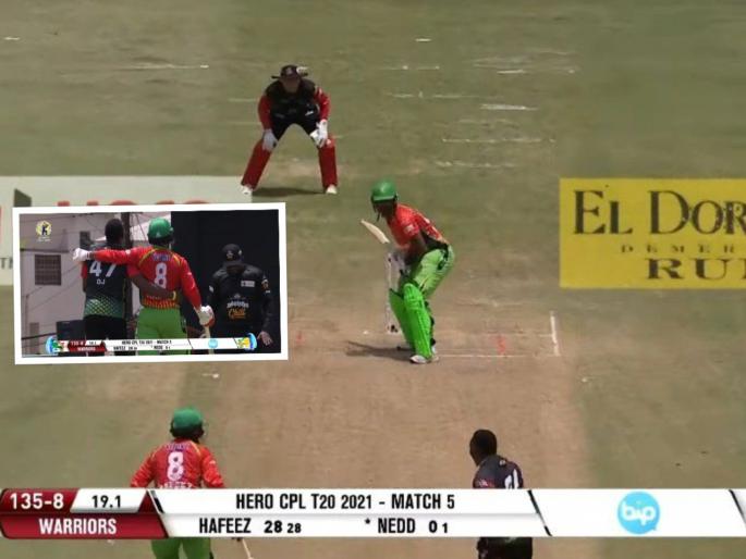Caribbean Premier League 2021 : इंडियन प्रीमिअर लीग २०२१च्या दुसऱ्या टप्प्यासाठी खेळाडू सज्ज होत आहे. कॅरेबियन प्रीमिअर लीगमधून ( CPL 2021) हे खेळाडू सराव करून घेत आहेत. शुक्रवारी आंद्रे रसेल, किरॉन पोलार्ड हा महत्त्वाच्या खेळाडूंनी तुफान फटकेबाजी करून IPLमधील आपापल्या फ्रँचायझीसाठी शुभसंकेत दिले. त्यात RCBनं करारबद्ध केलेल्या टीम डेव्हिडनंही CPLच्या पदार्पणाच्या सामन्यात ताबडतोड अर्धशतक झळकावले. शनिवारी चेन्नई सुपर किंग्सच्या ड्वेन ब्राव्होनं सर्वांचे लक्ष वेधले. पाकिस्तानचा फलंदाज मोहम्मद हाफिज याच्यासोबत तो असं काही वागला की ज्याची सर्वत्र चर्चा सुरू झाली अन् त्याचे कौतुकही होऊ लागले.