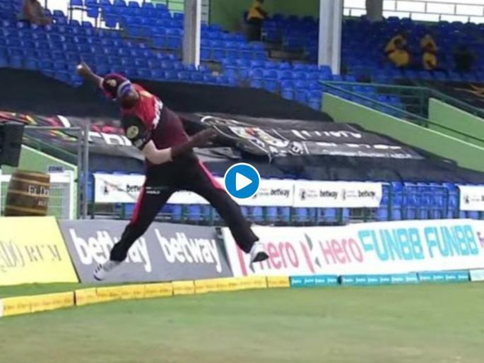 कॅरेबियन प्रीमिअर लीगमध्ये ( Carabian Premier League 2021 ) बुधवारी अफलातून सामने झाले. किरॉन पोलार्डच्या त्रिनबागो नाइट रायडर्स (Trinibago Knight Riders) विरुद्ध गयाना अॅमेझॉन वॉरियर्स (Guyana Amazon Warriors) यांच्यातला सामना Super Overमध्ये खेळला गेला. पोलार्डच्या संघातील अकिल होसेन यानं १८व्या षटकात निकोलस पूरनचा अफलातून झेल घेत सामन्याला कलाटणी दिली. त्यानंतर सामना सुपर ओव्हमध्ये गेला अन् पोलार्डच्या जीवात जीव आला. सुपर ओव्हरमध्ये ७ धावांचे लक्ष्य पोलार्ड व कॉलिन मुन्रो हे तगडे फलंदाज सहज पार करतील असेच वाटत होते. पण, नाइट रायडर्सनं ६ धावाही करता आल्या नाही आणि वॉरियर्सनं हा सामना जिंकला. ( Incredible stunner of a catch by Akeal Hosein)