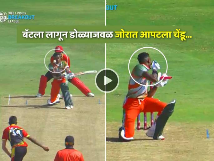 Alick Athanaze ball hit on face, viral video: क्रिकेटमध्ये केव्हा काय घडेल सांगता येत नाही. क्रिकेटच्या मैदानात कधीकधी जीवाला धोका निर्माण होणाऱ्या घटनाही घडतात. वेस्ट इंडिजमध्ये सुरू असलेल्या ब्रेकआउट टी-२० लीगच्या एका सामन्यातही असेच काहीसे पाहायला मिळाले. तेथे एक धक्कादायक घटना घडली. हेल्मेटशिवाय फलंदाजी करणाऱ्या एका फलंदाजाच्या चेहऱ्यावर चेंडू आदळला. अँलिक अथानाझे असं त्या फलंदाजाचं नाव असून त्याच्या अर्धशतकानंतर हा प्रकार घडला.