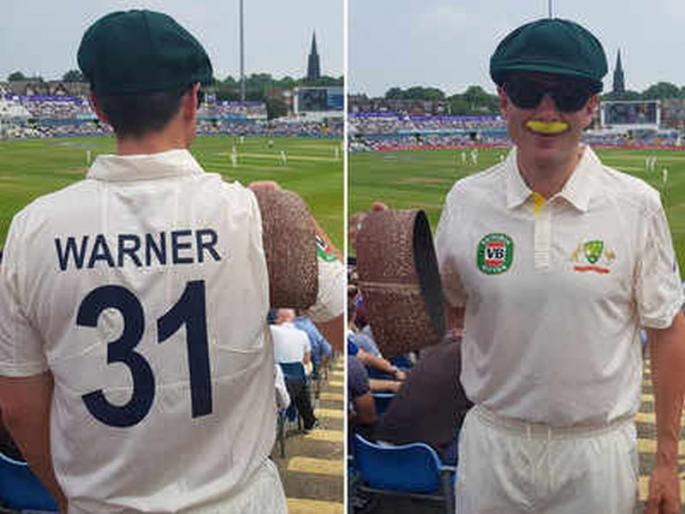 या सामन्यात एक चाहता वॉर्नरचे नाव असलेलं टी-शर्ट परीधान करून आला, त्याचबरोबर त्याने ऑस्ट्रेलियाची कॅपही परीधान केली होती. सुरुवातीला ही व्यक्ती वॉर्नरची फॅन असेल, असे बऱ्याच जणांना वाटत होते. पण त्याने हातामध्ये सँड पेपर पकडलेला लोकांनी पाहिला आणि तो वॉर्नरला ट्रोल करत असल्याचे समजले.