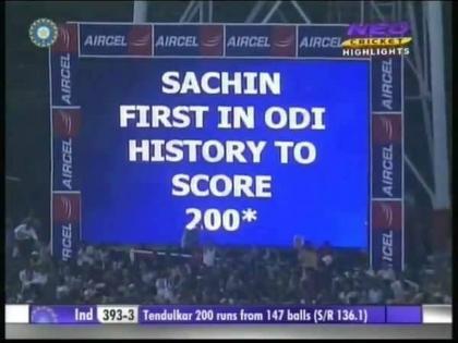 पण, यात सर्वात सचिनची खेळी अविस्मरणीय ठरली. सचिननं 147 चेंडूंत 25 चौकार व 3 षटकार खेचून नाबाद 200 धावा केल्या. सचिनच्या या द्विशतकात 100 धावा या चौकारांनीच आल्या. पुरुष क्रिकेटमध्ये द्विशतक झळकावणारा सचिन हा पहिलाच फलंदाज ठरला. त्याच्या या फटकेबाजीच्या जोरावर टीम इंडियानं 3 बाद 401 धावा चोपल्या. प्रत्युत्तरात आफ्रिकेचा संघ 42.5 षटकांत 248 धावांत तंबूत परतला.