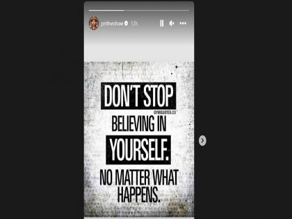 पृथ्वी शॉने इंस्टाग्राम एक स्टोरी ठेवून म्हटले, "थांबू नका, स्वत:वर विश्वास ठेवा. जे काही होतंय त्याची अजिबात पर्वा करू नका." काल झालेल्या सामन्यात दिल्ली कॅपिटल्सने प्रथम फलंदाजी करताना निर्धारित २० षटकांत ८ बाद १६२ धावा केल्या. दिल्लीने दिलेल्या १६३ धावांच्या आव्हानाचा पाठलाग करताना गुजरातने साजेशी सुरूवात केली. साई दर्शनने केलेल्या ४८ चेंडूत ६२ खेळीच्या जोरावर हार्दिक पांड्याच्या गुजरात टायटन्सने सलग दुसरा विजय मिळवला. गुजरातच्या संघाने १८.१ षटकांत ४ बाद १६३ धावा करून सामना आपल्या नावावर केला.