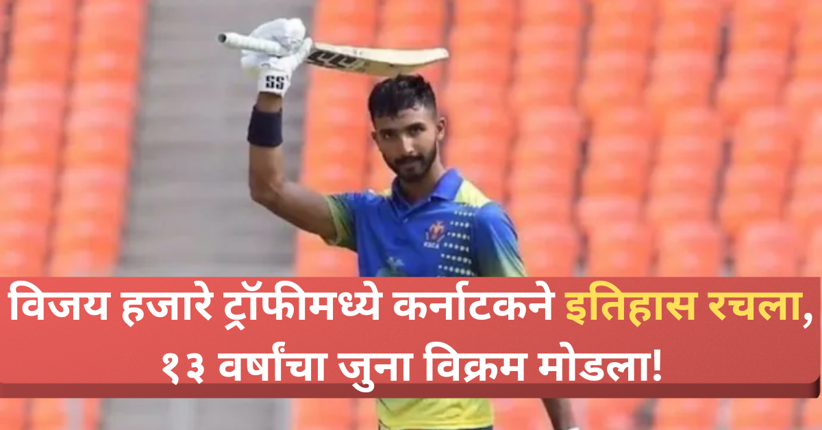 Web Summary : Karnataka created history in the Vijay Hazare Trophy, successfully chasing down a 413-run target against Jharkhand. Devdutt Padikkal's 147 led the charge, surpassing Andhra's 2012 record. This is the second-highest List-A run chase ever.