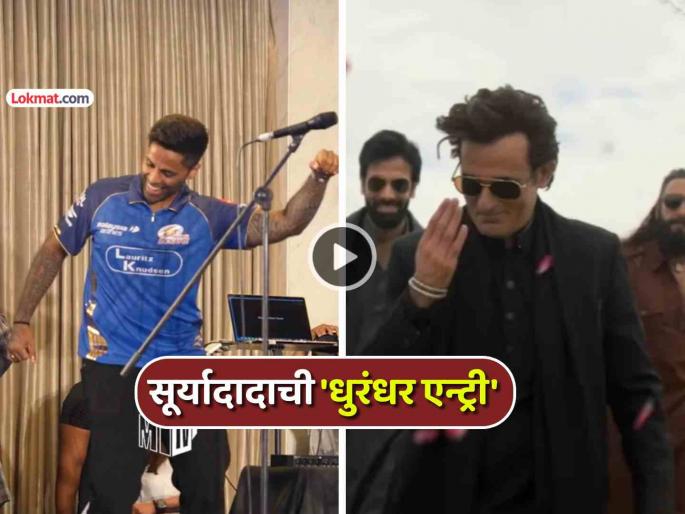 Suryakumar Yadav Dhurandhar FA9LA Dance video: भारतीय क्रिकेट संघाचा स्टार फलंदाज सूर्यकुमार यादव सध्या त्याच्या फलंदाजीसोबतच त्याच्या डान्समुळेही चर्चेत आला आहे. नुकत्याच पार पडलेल्या मुंबई इंडियन्सच्या एका खास कार्यक्रमात सूर्यकुमारने बॉलिवूडचा लोकप्रिय अभिनेता अक्षय खन्ना याच्या 'धुरंधर' चित्रपटातील एका आयकॉनिक डान्स स्टेपची हुबेहूब नक्कल केली. हा व्हिडिओ सोशल मीडियावर तुफान व्हायरल झाला असून चाहत्यांनी याला मोठ्या प्रमाणात पसंती दिली आहे.