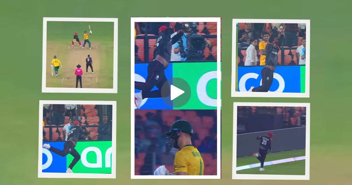 Web Summary : टी20 विश्व कप 2026 में, कनाडा के डिलन हेयलिगर ने बाउंड्री पर शानदार कैच लेकर शानदार फॉर्म में चल रहे एडेन मार्करम को आउट किया। मार्करम ने 59 रन बनाए। मिलर और स्टब्स की शानदार पारियों की बदौलत दक्षिण अफ्रीका ने 213/4 रन बनाए।