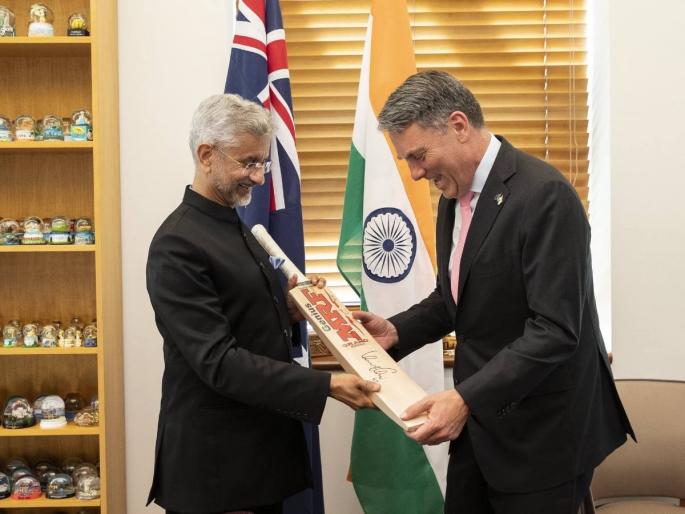 नवी दिल्ली : भारताचे परराष्ट्र मंत्री एस जयशंकर यांनी आपल्या दुसऱ्या ऑस्ट्रेलिया दौऱ्यात ऑस्ट्रेलियाचे संरक्षण मंत्री आणि उपपंतप्रधान रिचर्ड मार्ल्स तसेच शिक्षण मंत्री जेसन क्लेअर यांची भेट घेतली. 10 ऑक्टोबर रोजी झालेल्या या भेटीत दोन्ही देशांतील शांततापूर्ण, समृद्ध आणि नियमांवर चर्चा झाली. तसेच भारताच्या परराष्ट्र मंत्र्यांनी ऑस्ट्रेलियाच्या उपपंतप्रधानांना विराट कोहलीने स्वाक्षरी केलेली बॅट भेट म्हणून दिली. त्यामुळे एस जयशंकर यांच्या या भेटीची क्रिकेट वर्तुळात चर्चा रंगली आहे.