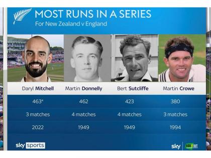 ENG vs NZ 3rd Test : टॉम ब्लंडल व डॅरिल मिचेल या जोडीनं पुन्हा एकदा न्यूझीलंडला सावरले. इंग्लंडविरुद्धच्या तिसऱ्या कसोटीत किवींचे ५ फलंदाज १२३ धावांवर माघारी परतल्यानंतर Daryl Mitchell व Tom Blundell ही जोडी खेळपट्टीवर अडून बसली. दोघांनी १२० धावांची भागीदारी केली. ब्लंडल जेव्हा बाद झाला तेव्हा DRS बंद पडला होता आणि त्यामुळे त्याला मैदानावरील अम्पायरचा निर्णय अंतिम मानून माघारी जावे लागले. डॅरिल मिचेलने शतक झळकावून १९४९ सालचा मोठा विक्रम मोडला. मिचेलची विकेट पडल्यानंतर लंच ब्रेक घेतला गेला अन् न्यूझीलंडच्या ८ बाद ३२५ धावा झाल्या आहेत.