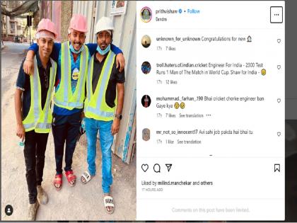 पृथ्वी शॉच्या फोटोवर चाहते काही भन्नाट कमेंट करत आहेत. 'नवीन जॉबसाठी अभिनंदन', 'करिअरची चांगली निवड केली आहेस', 'भाई इंजिनिअर बनून इंजिनिअर्सचे करिअर खराब करू नकोस', अशा भन्नाट प्रतिक्रिया चाहते देत आहेत.