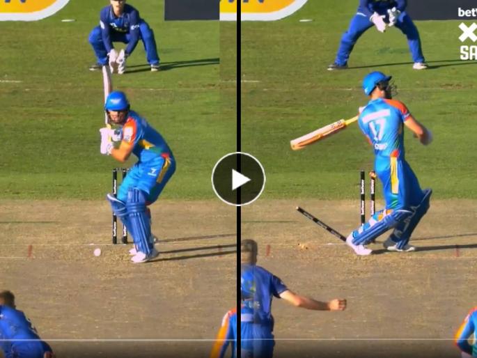 मार्कस स्टॉइनीस ११ धावांवर बाद झाला. डर्बन सुपर जायंट्सच्या डावाचे १५वे षटक सुरू होते. या षटकातील चौथा चेंडू ऑली स्टोनने थोडा आखूड टप्प्याचा टाकला. अतिरिक्त बाऊन्समुळे स्टॉइनीसला धक्का बसला आणि तो शॉट खेळण्यासाठी जोर लावू लागला. चेंडू त्याच्या बॅटच्या हँडलला चेंडू लागला आणि उडून स्क्वेअर लेगच्या फिल्डरने झेल घेतला. तर नंतर त्याची बॅट थेट स्टंपलाच लागली आणि त्यामुळे तो हिट विकेटदेखील झाला. पाहा व्हिडीओ-